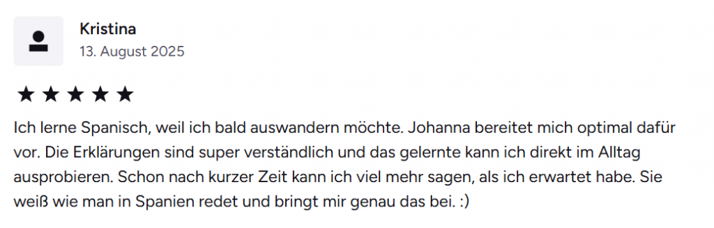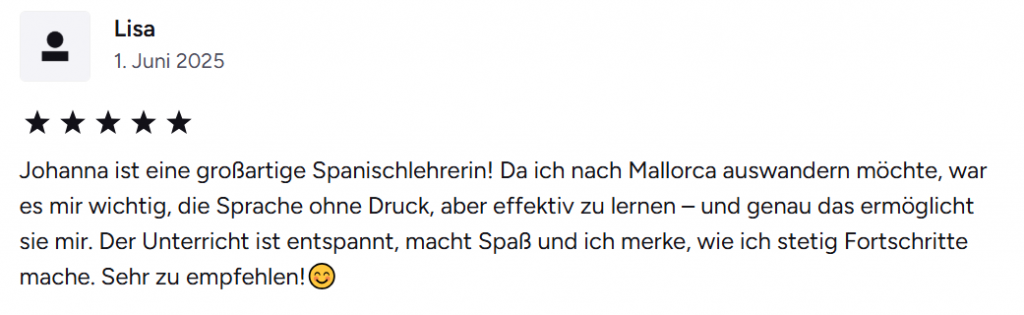 Ich bin mit 23 Jahren mit meinem Hund nach Sevilla ausgewandert und zeige dir das wirkliche Spanisch. Ich habe spanische Freunde, gehe aus und weiß wie viel Kultur auch in der Sprache steckt.